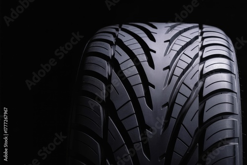 Close-Up of Car Tire Tread Pattern on Black Background