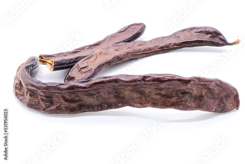closeup of carob isolated on a white background