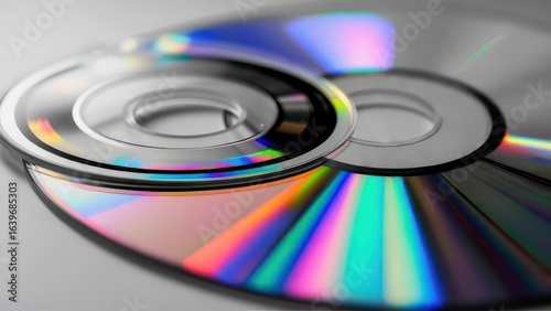 Close-up of CDs reflecting light