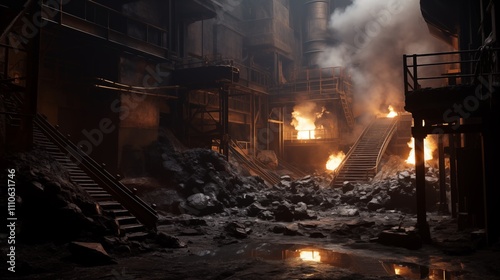 Close-up of coal chunks, soft natural light, space on the right,generative ai illustration