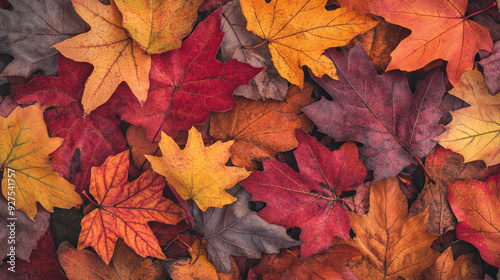 Close-Up of Colorful Autumn Leaves in Red, Yellow, and Orange Hues