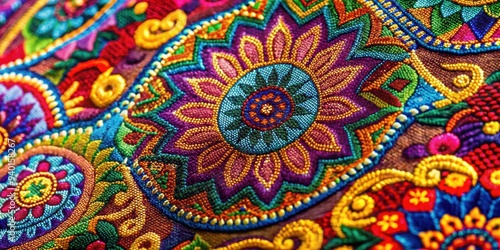Close-up of colorful fabric texture with intricate patterns , textile, material, texture, clothing, sewing, design