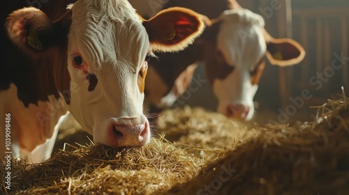 Close-up of Cow Eating Hay