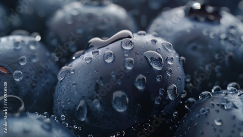 Close-up of dew-kissed, fresh blueberries with vivid textures.