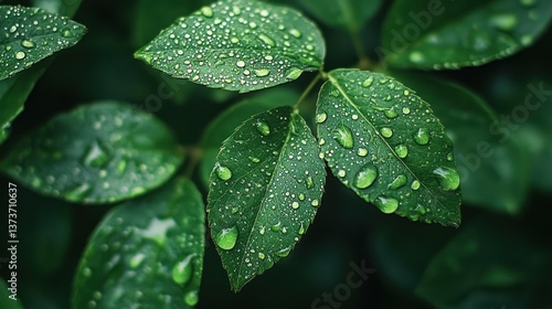 Close-up of Dew-Kissed Leaves: Nature's Emerald Jewels