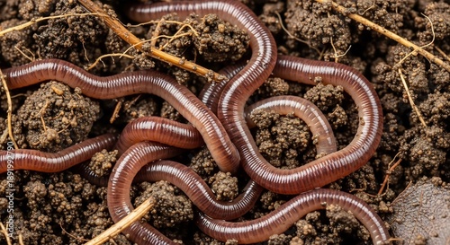 Close-up of Earthworms in Soil - A Detailed Macro Shot.
