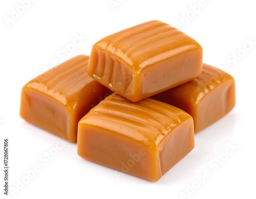 Close-up of four caramel squares