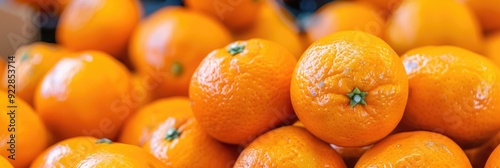 Close-up of fresh and colorful tangerines showcased at a marketplace.