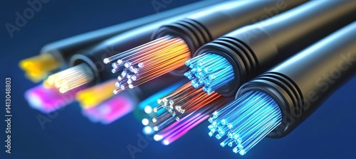 Close-up of glowing fiber optic cables