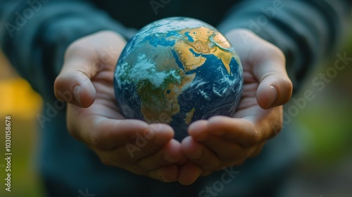 Close-up of Hands Holding a Miniature Earth Globe