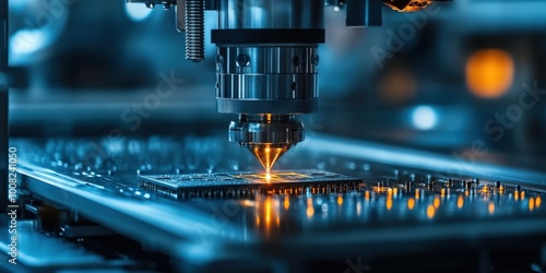 Close-Up of High-Tech Industrial Machine Manufacturing Microchips