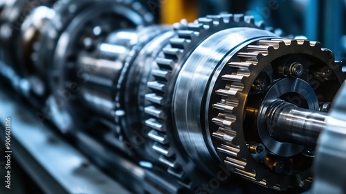 Close-up of industrial machinery with precise mechanical components and metal parts in a factory setting, showcasing engineering and technology.
