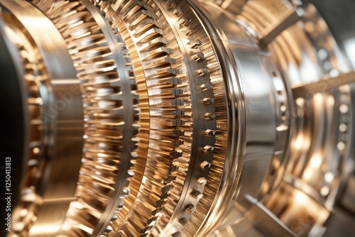 Close-up of intricate metallic gears, showcasing precision engineering and industrial design.