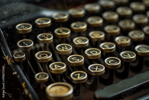 Closeup of keys on old typewriter showing letter s