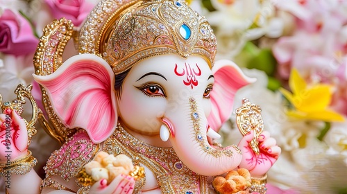Close-Up of Lord Ganesha's Hands Holding Offerings