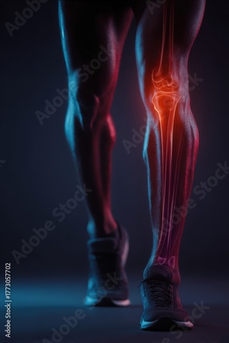 Close-Up of Male Athlete's Leg with Illuminated Joint Pain Visualization