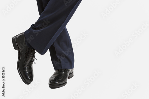 Closeup of Male's Stylish Oxfrod Brogue Shoes Posing with Legs C