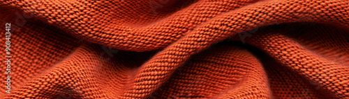 Close-up of orange fabric with detailed texture, showcasing woven pattern and soft folds. High-resolution image ideal for textile and design projects.