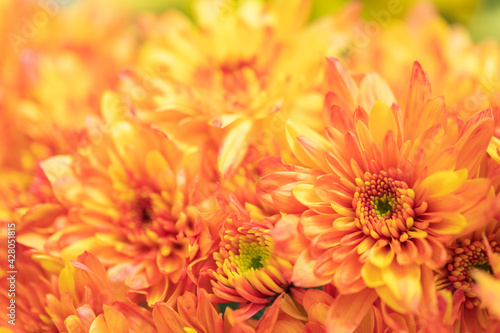 Closeup of orange Mums flower with copy space using as background natural flora, ecology wallpaper page concept.
