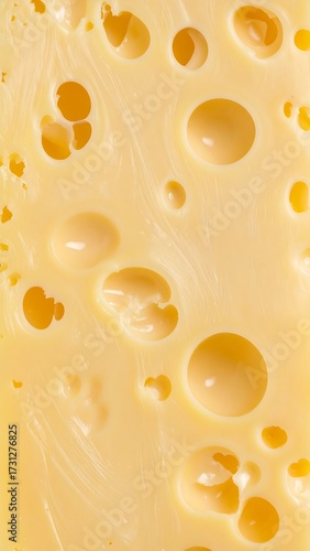 Close-up of pale yellow cheese with numerous irregular holes (1)