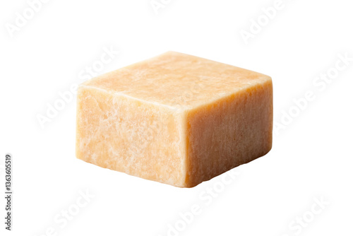 Close-up of parmesan cheese cube isolated on black background, cut out