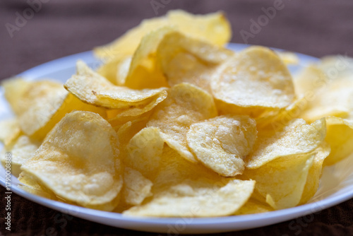 Close-Up of Potato Chips on a Brown Surface