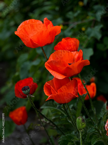 Close-up of red poppy flowers on field
