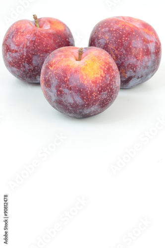 Closeup of ripe plums isolated on white.