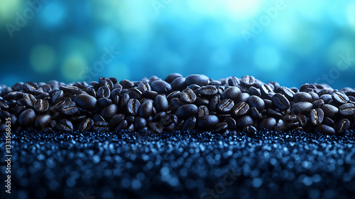 Close-Up of Roasted Coffee Beans on a Textured Surface.