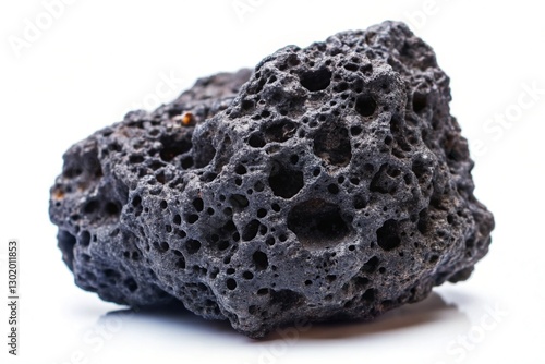 Close-up of Rough Black Volcanic Rock on White Background - Texture and Detail