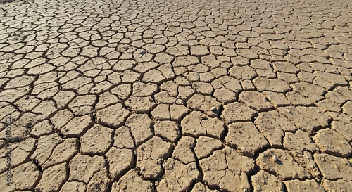 Close-up of severely cracked dry earth, showcasing the harsh effects of drought and desertification. A powerful environmental background representing climate change.