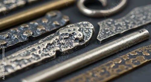 Closeup of Textured Metal Keys and Components