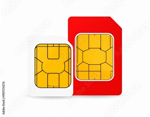 Close-up of Two SIM Cards - Mini and Standard Size, Isolated on White Background.