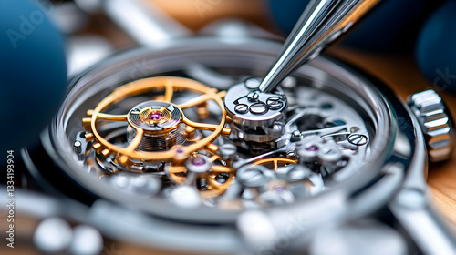 Close-up of watchmaker meticulously repairing intricate clockwork mechanism