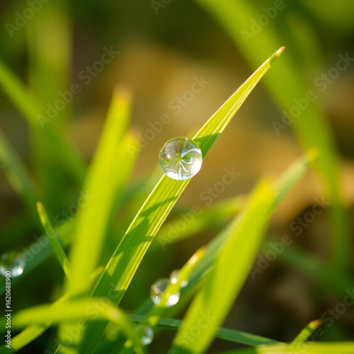 Closeup of water droplets with light reflections creating a clean minimal aesthetic