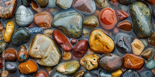 Close-Up of Wet Pebbles with Water Droplets in Vibrant Natural Colors