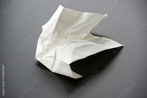 Close-up of white used paper handkerchief against black background. Photo taken February 11th, 2025, Zurich, Switzerland.