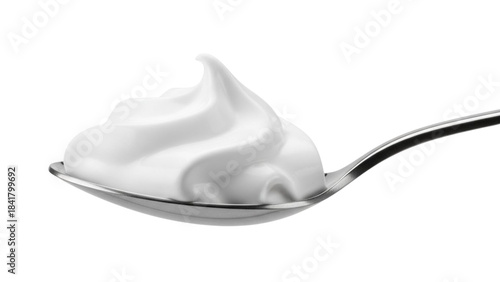Closeup of white whipped cream on a spoon with black background dessert sweet