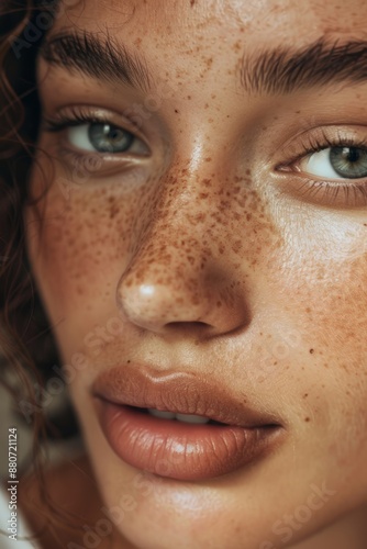 Close-up of woman with freckles on face
