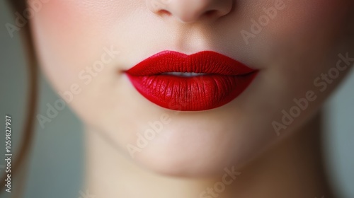 Close-Up of Woman's Lips with Vibrant Red Lipstick Highlighting Smooth Skin and Subtle Makeup