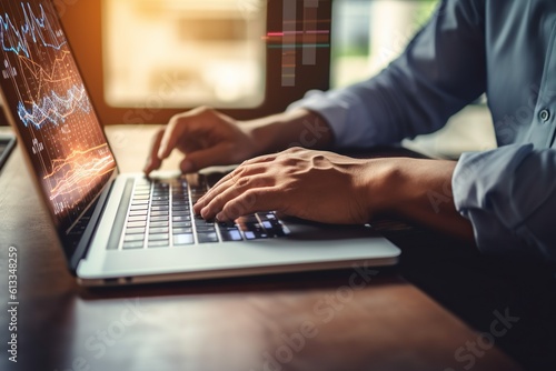 Closeup on meeting desk with business people analyze