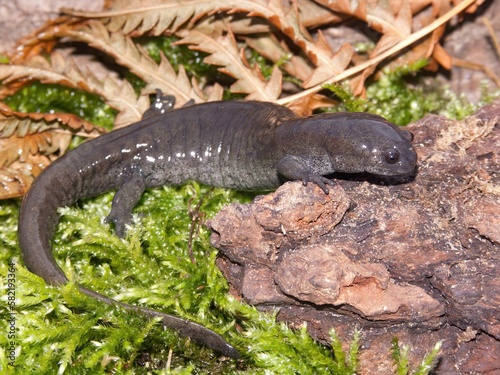 Closeup on the endangered Narrow mouthed salamander, Ambystoma texanum