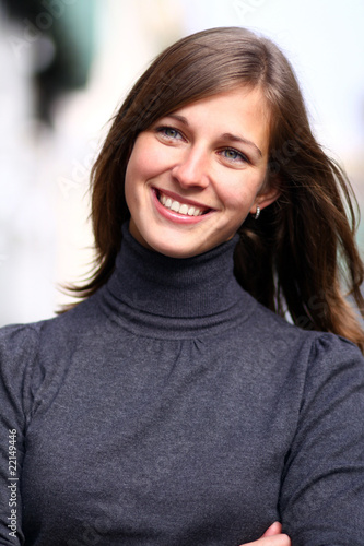 Closeup portrait of a happy young woman