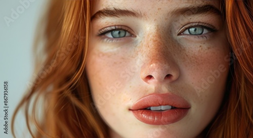 Closeup Portrait of a Young Woman With Red Hair and Freckles
