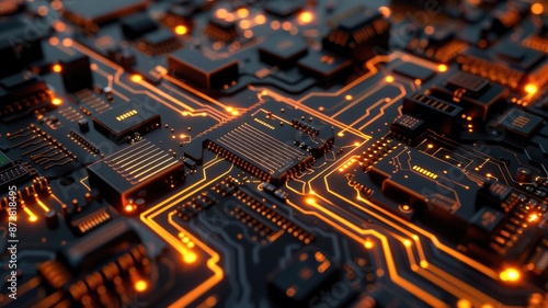Close-up semiconductor in electronic circuit board with computer technology components.generative ai