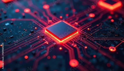 Close-up shot of a futuristic circuit board, glowing nodes representing a digital network architecture, illustrating the concept of a blueprint for the internet , abstract, wires, metaverse