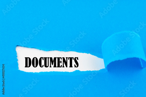Close-up shot of paper tear with text Documents.
