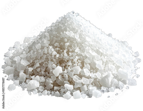 Close-up studio shot of a pile of coarse, crystallized, white, food-grade substance