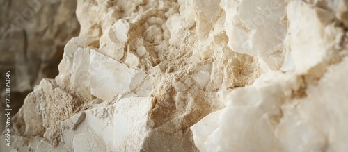 Close-up texture of natural limestone rock surface with irregular shapes and neutral color tones ideal for backgrounds or material design