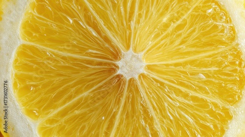 Close-Up View of a Fresh Lemon Slice with Bright Yellow Pulp